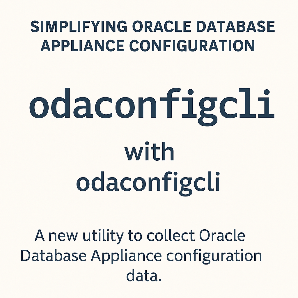 With the release of Oracle Database Appliance (ODA) software 19.26, Oracle introduced a brand-new utility: odaconfigcli. This tool is designed to make configuration collection and troubleshooting easier for administrators managing ODA deployments.