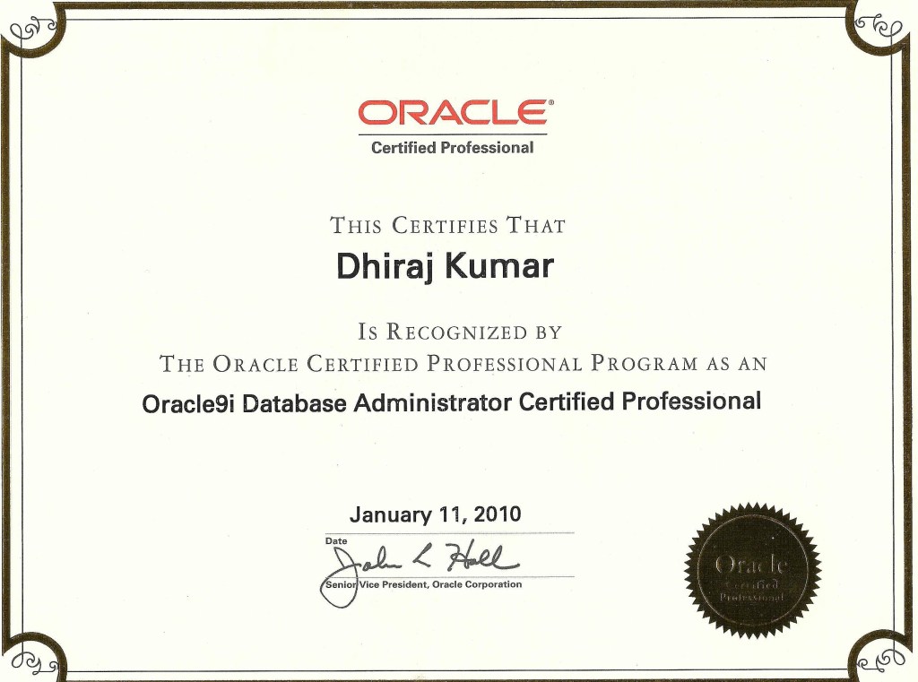 - Oracle9i Database Administrator Certified Professional